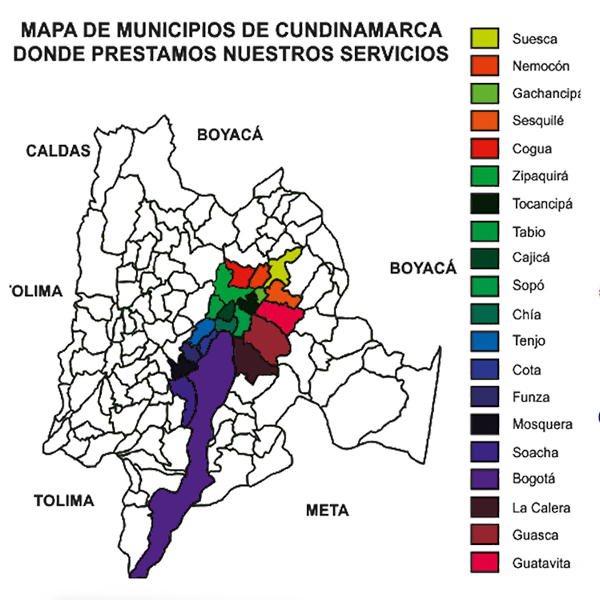 Atendemos en mas de 20 municipios de la sabana de Bogotá, contando con el mejor servicio técnico y la mejor calidad de servicio